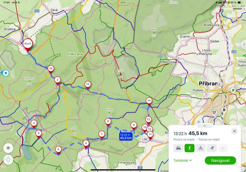 Vandr panenskkou přírodou Brdských lesů, okolo Padrťských rybníků s přespáním s mnoha komáry a píchavými muškami. Snídaní v obci Nepomuk, obědem v Lázech a návrat centrem (bohužel bez koupačky - vše je 1. ochranné vodní pásmo). Za 24 hod. našlapáno 45 km.